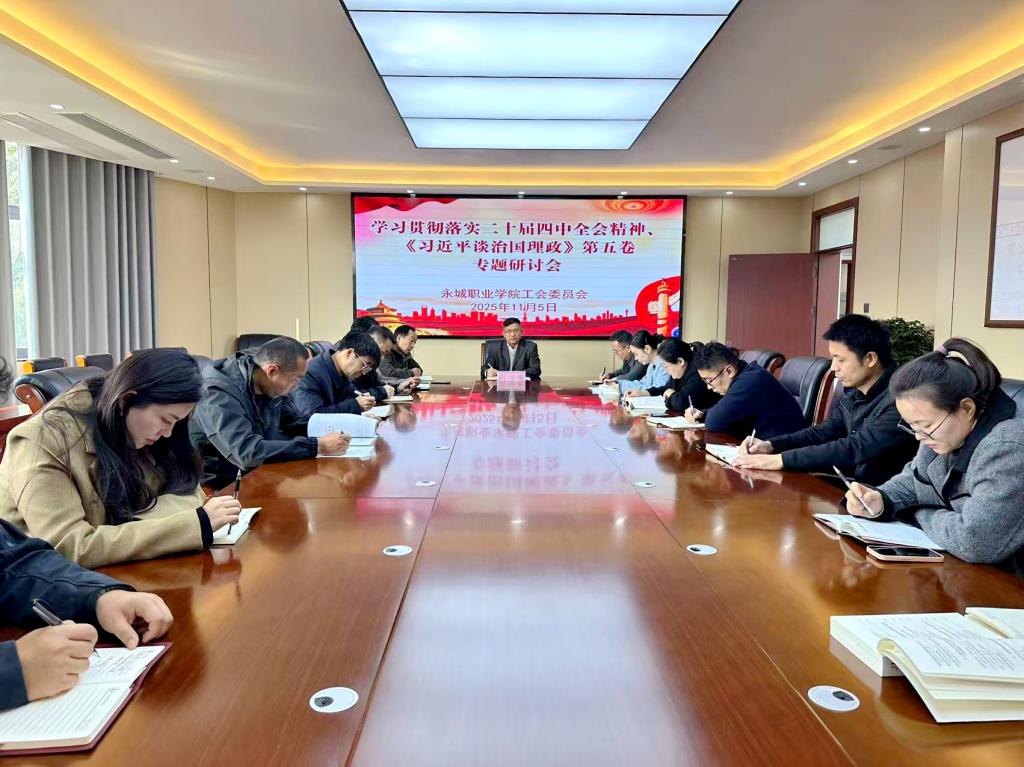 会议要求,工会系统要精心组织全院教职工以专题化、分众化、场景化、互动化的方式,推动党的二十届四中全会精神和《习近平谈治国理政》第五卷的学习活动走深走实。要在学深悟透上下功夫,坚持原原本本学、融会贯通学,准确把握其核心要义与精神实质;要在知行合一上见实效,把学习成果转化为推动学院“五大校园”建设、“双高”建设和教育教学管理的具体行动;要在示范引领上做文章,党员干部要发挥“头雁效应”,带动形成全院师生理论学习、躬身实践的浓厚氛围。(文/豆培 图/冯敏)
