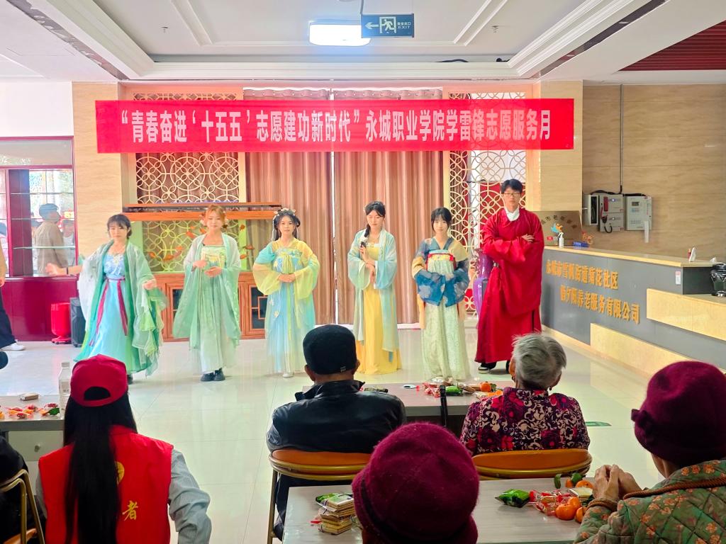 3月29日,春意融融,我院团委与马克思主义学院联合组织青年志愿者赴永城市菊花社区敬老院,开展学雷锋志愿服务月主题慰问演出活动,以文艺暖流传递敬老温情,践行新时代雷锋精神。